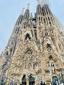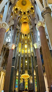 Visite de la Sagrada Familia. Vous pourrez télécharger une application sur votre mobile afin d’avoir un guide audio. Il n’y a pas d’explications qui s’adressent spécifiquement aux enfants. Cette cathédrale pas encore terminée est magnifique ! Les piliers sont des troncs d’arbres. Gaudi disait : « Rien n’est inventé, parce que la nature a déjà tout écrit. L’originalité consiste à revenir aux origines. »
