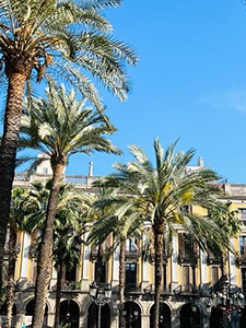 Levez les yeux vers les façades joliment décorées, les pavés à vos pieds avec un dessin de fleur à quatre pétales : « la rose de Barcelone ». Ils sont emblématiques de la ville autant que les nombreuses allées de palmiers.